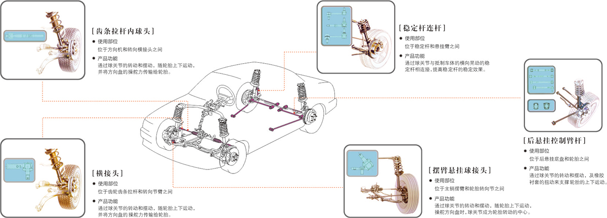 懸架擺臂及球頭 后懸架控制連桿總成 穩定桿連桿總成 轉向拉桿總成 輪邊離合器總成 其他